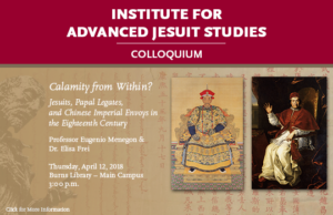 “Calamity from Within?: Jesuits, Papal Legates, and Chinese Imperial Envoys in the Eighteenth Century” begins at 3pm on April 12 at the Burns Library on the main campus of Boston College.